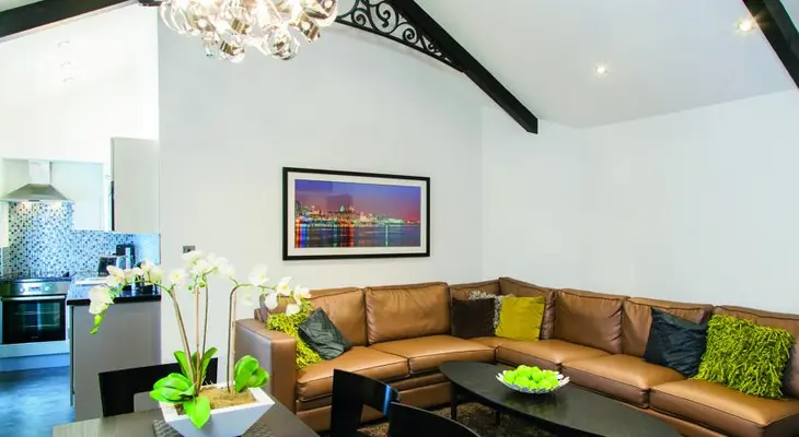 “In a 19th-century warehouse in the city’s hip RopeWalks district, these slick apartments are well situated for those coming to take advantage of Liverpool’s shopping and nightlife.”