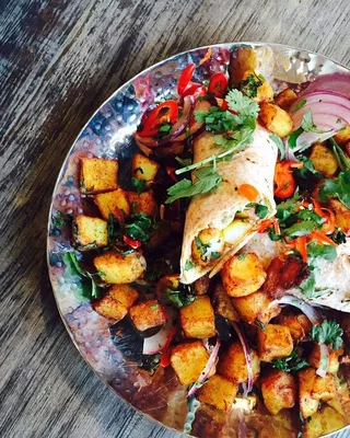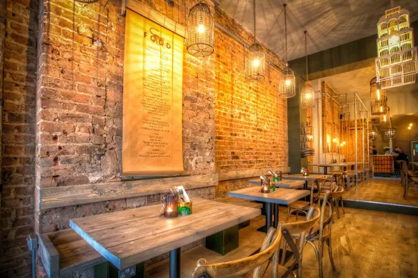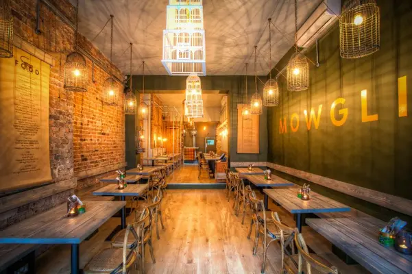 “Indian street food is the draw at this fun and colorful spot that has lights fashioned from old birdcages and a bar created from former railway sleepers.”