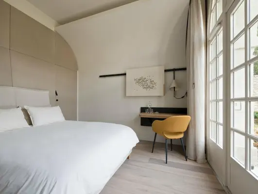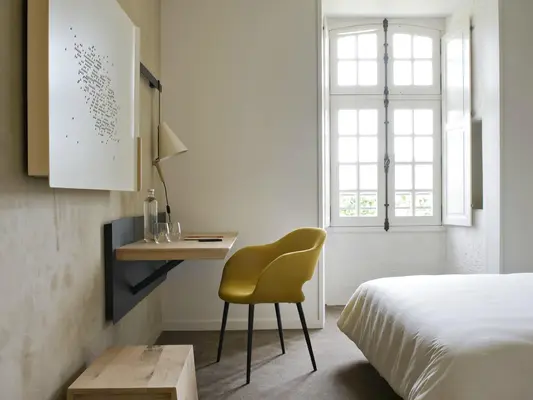 “This unusual hotel is set on 11th-century foundations within the perimeter of the Abbaye Royale in one-time monks' quarters.”