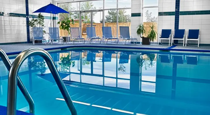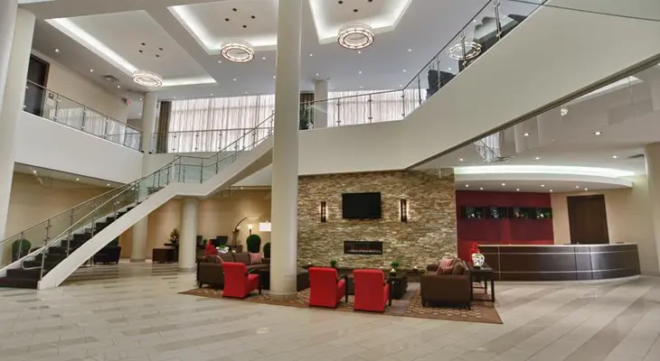 “This modern hotel is located less than a mile north of major highway 401, and within walking distance of downtown... Rooms include suites with separate living rooms and king bed or two double beds.”