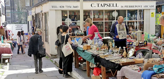 “A pretty pedestrian thoroughfare just off Upper Street, Camden Passage is famous for its many antiques shops selling everything from vintage furniture to period jewelry to timeless timepieces.”