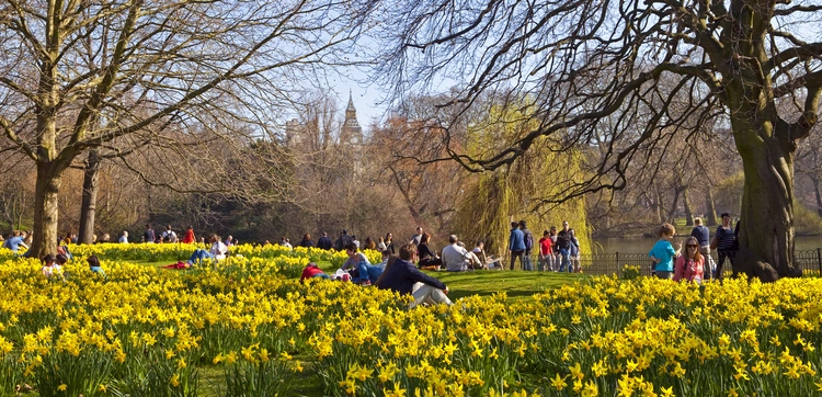 "St. James' Park in London is one of its most famous, right alongside Buckingham Palace and perfect for a rest during a busy day of sightseeing. It is known for its waterfowl"