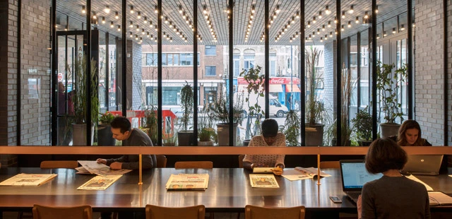 "On any given weekday, the lobby here is packed with freelancers perched on every couch and communal table in the sprawling, lo-fi industrial space." Full review