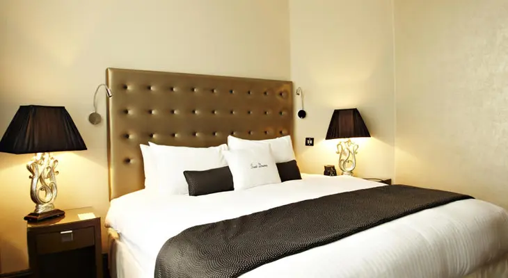 “A 112-room luxury hotel just south of Oxford St. Special features include a spa and pool as well as a bar whose tables sit within original prison cells.”
