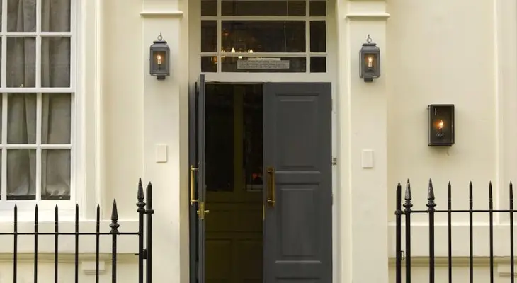 "Sister to the Soho House hotel, this gorgeous pair of adjoined townhouses creates a homey hidden space in the middle of media-centric, trendy Soho."