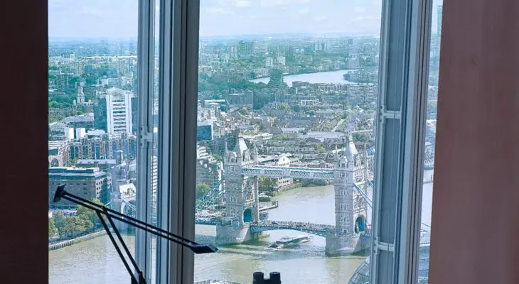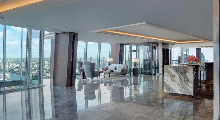 "Lavish hotel occupying Floors 34 through 52 of a dramatic, glass-clad 1,016-foot pyramidal tower, granting astounding panoramas of London." Full review