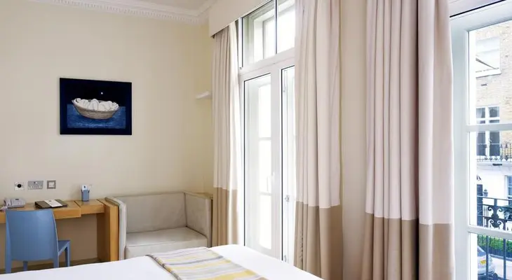 “The brainchild of Swiss hotelier Jean-Luc Aeby, this 21-bedroom townhouse hotel is set in a Grade II listed building just minutes from the King's Road.”