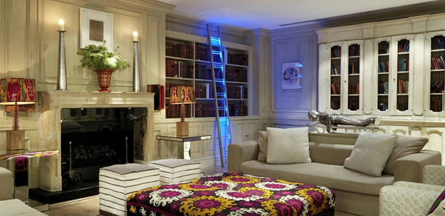 "Think pink, embroidered armchairs and sofas dotted around the library, in-room retro Tivoli radios, and fine Frette Egyptian cotton sheets contrasted with snug woolen blankets." Full review