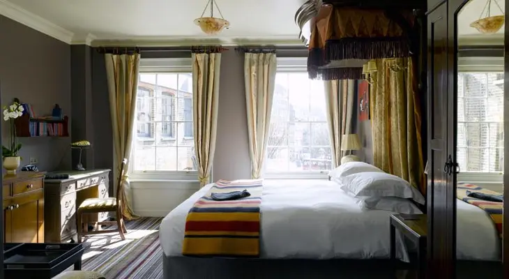 "A 13-bedroom Georgian townhouse hotel in Clerkenwell, with a cool cocktail lounge. Rooms range in size from “crash pad” to a large suite. Contemporary style and comfort."