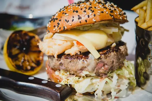 “Burger or lobster or both? Greedy!”