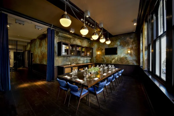 “An art deco-style bar sits among tables primed for lunch meetings. The decor is dark and distinguished. The food is classy but not overly adventurous.”