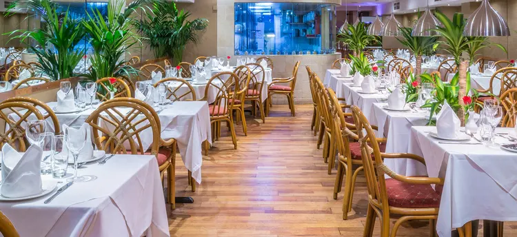 “Decorated in muted colours, with mirrors and leafy foliage to enhance its airy feel, while an open kitchen gives diners an entertaining view as their masala and kebabs are freshly prepared.”