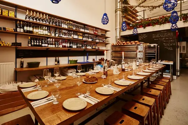 You can watch the pizzas being fired if you choose to sit on the stools around the open kitchen; otherwise there are closely packed but not cramped tables.