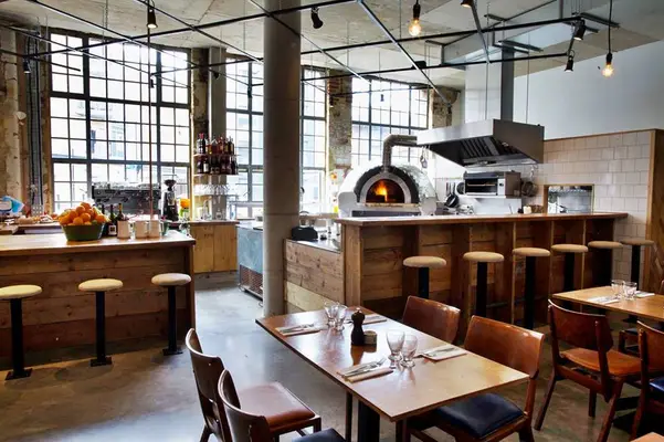 "This all-day spot in Hackney's Arthaus complex serves a midpriced, seasonally changing menu of wood-fired pizzas, house-cured charcuterie and Italian small plates alongside a Euro-centric wine list." Full review