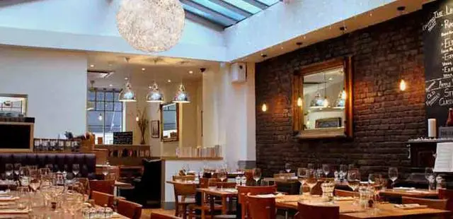 "There’s a cosy, neighbourhood vibe at this welcoming brasserie, which serves hearty English and Mediterranean bistro food in a brick-walled dining room. Mains £9–20."