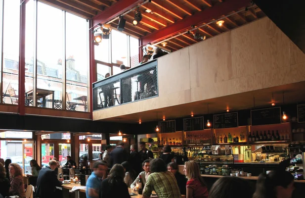 "Very lively theatre bar-café spread over two floors of the Young Vic with an outside terrace – it’s big enough to find a corner even when it’s packed with theatre goers."