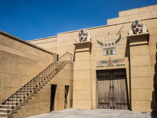 "Four 20-foot-tall columns, Sphinx heads, and hieroglyphics stand at the main entrance of the landmark Hollywood movie theater where Sid Grauman staged the first Hollywood premiere." Full review