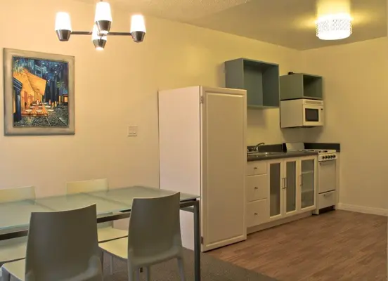 "Single rooms are equipped with microwaves and mini-fridges, while apartment-style suites all have fully equipped kitchens allowing guests to opt for home cooking."