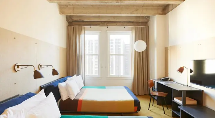 "The ever-hip, buzzy, 182-room Ace is big on quirky details: Haas Brothers murals in the lobby and restaurant, whimsically themed cocktails at the rooftop bar and retro-inspired rooms." Full review
