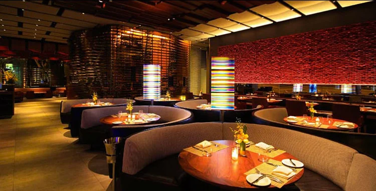 "This is not your father's steak house; businesspeople and somber mahogany have been swapped out for a fun-loving crowd bathed in multicolor lights from avant-garde fixtures."