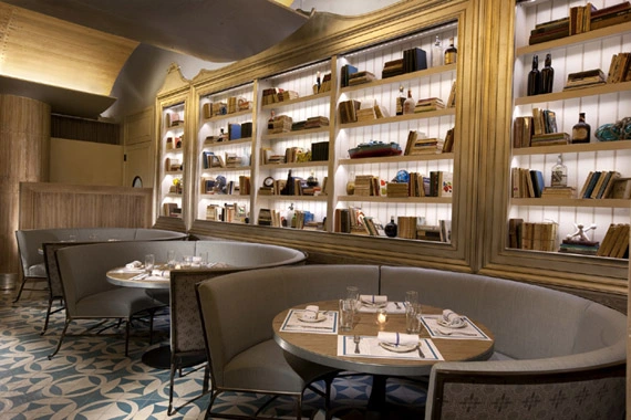 "Just off the soaring lobby of the chic W Hollywood Hotel & Residences, demure Delphine establishes a laid-back ambience with vintage photo murals and wood barreled ceilings." Full review