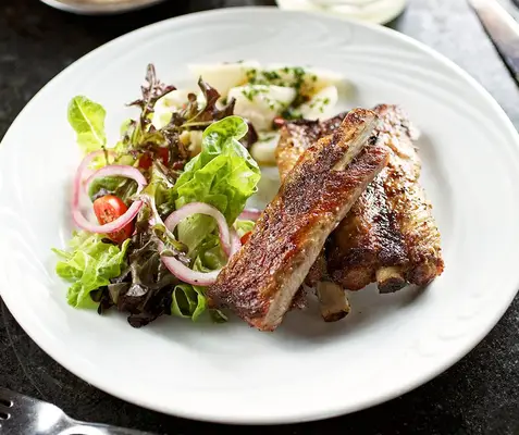 “The city’s best churrascaria—Brazilian steakhouse-barbecue restaurant—is this restaurant with muraled walls and soaring ceilings.”
