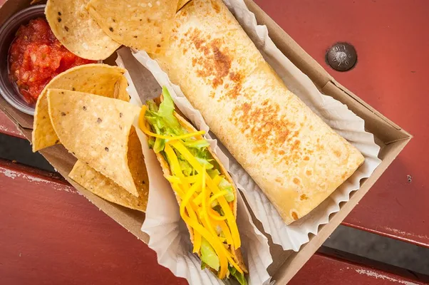 "Since 1959, this beloved Culver City walk-up taco joint has served American cheese-covered hard shell meat tacos, excellent chicken tamales and some of the most addicting chips and tomato salsa" Full review