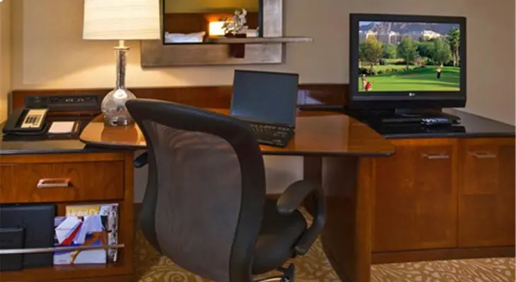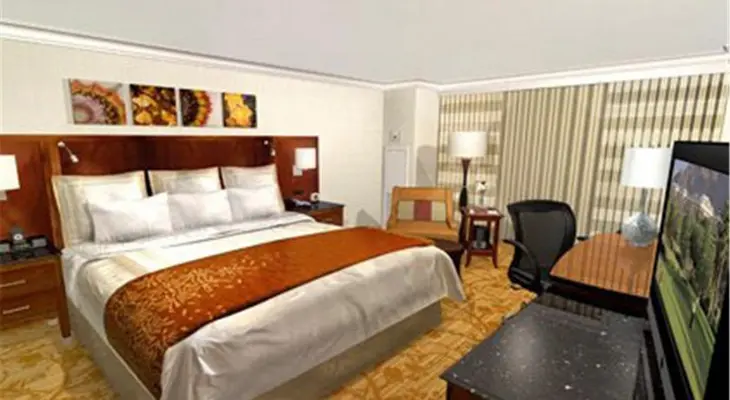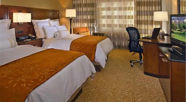 “The hotel lobby is kitted out in warm, red tones, evoking wax-dipped Maker’s Mark bottles, while in-room amenities include a book detailing the history of Kentucky bourbon.”