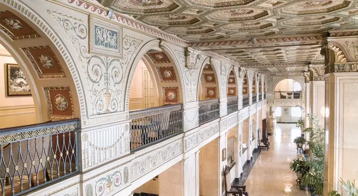 "Equestrian artwork pays tribute to horse country in this downtown thoroughbred's English Renaissance-style lobby, complete with hand-painted coffered ceilings."