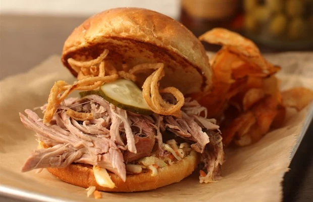 "Highlights include oysters on the half shell with bourbon mignonette; spicy peel-and-eat shrimp; seafood gumbo; spinach salad with candied pecans; smoked ribs, chicken or brisket; and fried pork chops." Full review