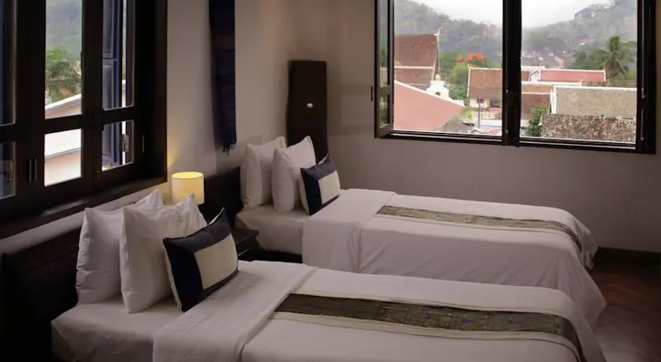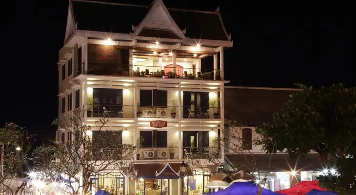“Well situated in the middle of town near Wat Mai and the Royal Palace Museum, this boutique hotel has 12 of the finest rooms in town, each beautifully designed with satellite TV and WiFi internet access.”