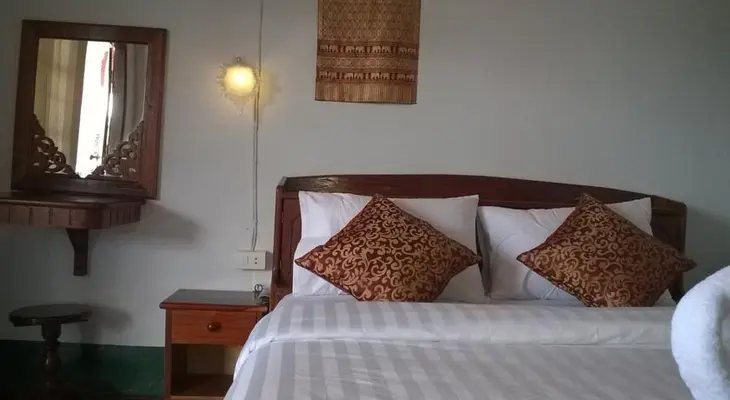 “There's a choice of air-conditioned en suite rooms with views of Phu Si's summit temple, as well as dorms (one four-berth female only, and two mixed).”