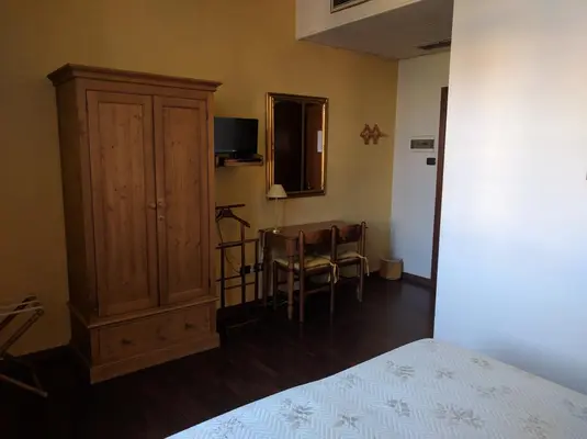 “Good-value if somewhat bland two-star, not far outside the walls; ten rooms with adequate en-suite facilities, plus a nice sunny terrace and private parking.”