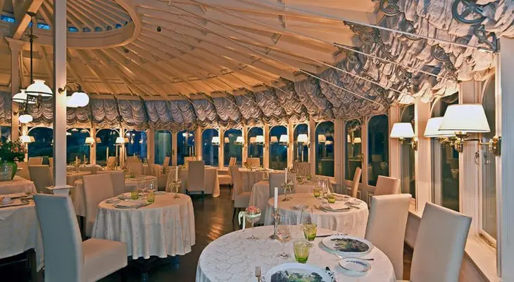 "Five-star accommodation in a stately 18th-century home, this Relais & Chateaux chain hotel stands at the foot of a range of softly rolling hills. The luxury rooms are spacious with lounge areas."