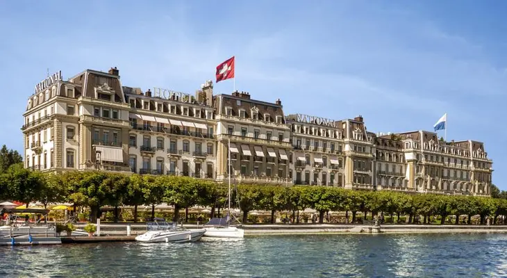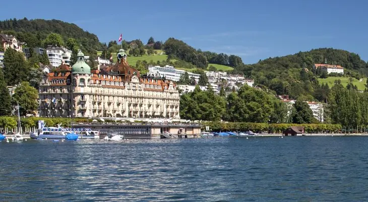 This luxury hotel on the edge of Lake Lucerne offers stunning mountain and lake views. — Oyster