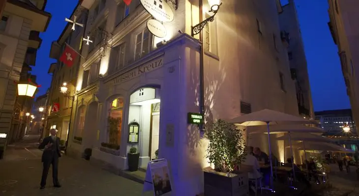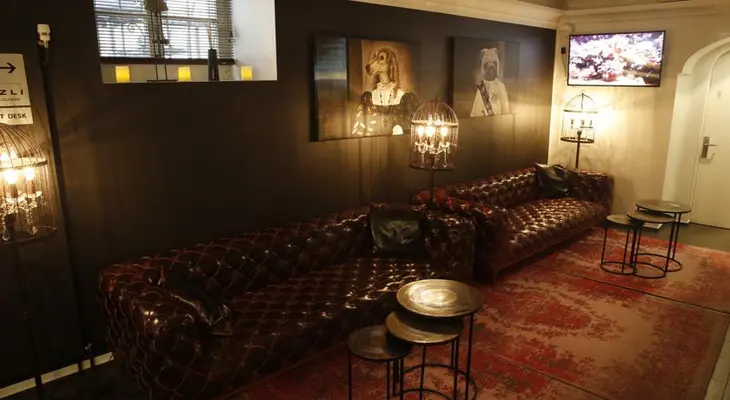 “In the bustling heart of the Old Town, this hotel has a tongue-in-cheek combination of sleek modern lines and gilded frames and fat cherubs.”