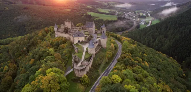 “ It looms 500 ft above the Sûre River, with commanding views of three valleys. Restorations have made this rambling hodgepodge of towers and walls more accessible.”
