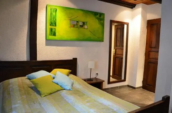 “Rooms upstairs are rustically furnished and tidy, with exposed beams, stucco, and oak armoires.”