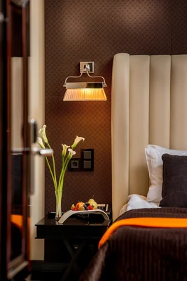 “Rooms are art-deco studies in black, white and every shade in between. Breakfast is served in the superb restaurant.”