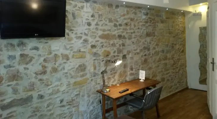 “Le Boulevardier is a bargain 11-room hotel with snug, spotless rooms. It's up a steep spiral staircase above a cool little bistro and jazz club of the same name, which doubles as reception.”