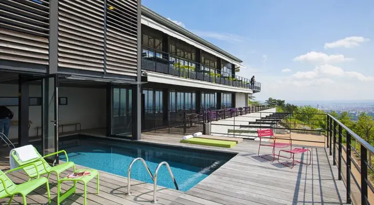 "'Go slow' is the Zen philosophy behind this concept hôtel cuisine à manger, a strikingly contemporary structure built from raw concrete, glass and wood, and surrounded on all sides by green." Full review
