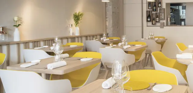 “In spring 2015 Gaëtan Gentil took over this restaurant on the Presqu'île that boasts a designer decor (white tables, hanging lamps) and a living wall.”
