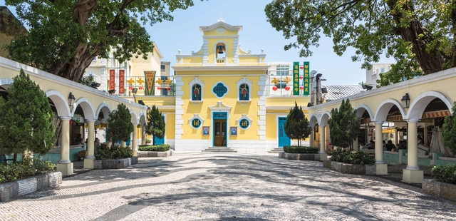 “Home to traditional Mediterranean-style houses painted in pastels, as well as the baroque-style Chapel of St. Francis Xavier and the Taoist Tam Kung Temple.”