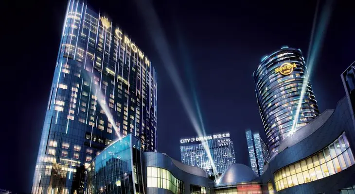 “Rooms at Crown Towers, the luxurious full-service hotel at the sprawling Macau City of Dreams complex, are contemporary and spacious.”