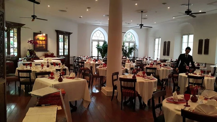 "Its period dining room is delightful, with tall ceilings, teak floorboards, ceiling fans, and display cases containing antique Chinese dishware." Full review