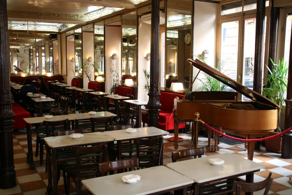 "An airy and peaceful space with high ceilings and a dusty elegance, its marble-topped tables slightly chipped and its red-velvet banquettes a little worn." Full review