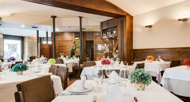 “Set in a 19th-century building in the center of Cava Baja, this popular eating spot is renowned for its generous-size quality steaks.”