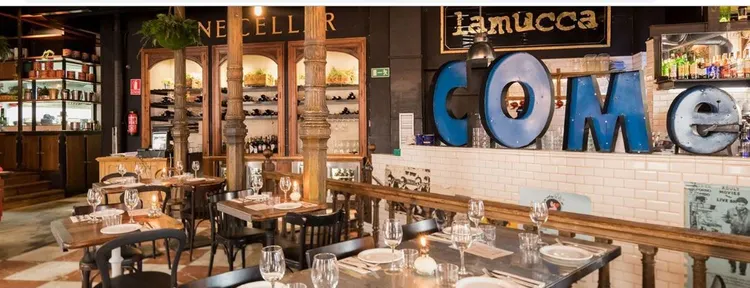 "Lamucca has possibly the most eclectic, globe-trotting menu in Madrid. Dishes like Thai curried chicken with jasmine rice...share the menu with Italian pizza and pasta."