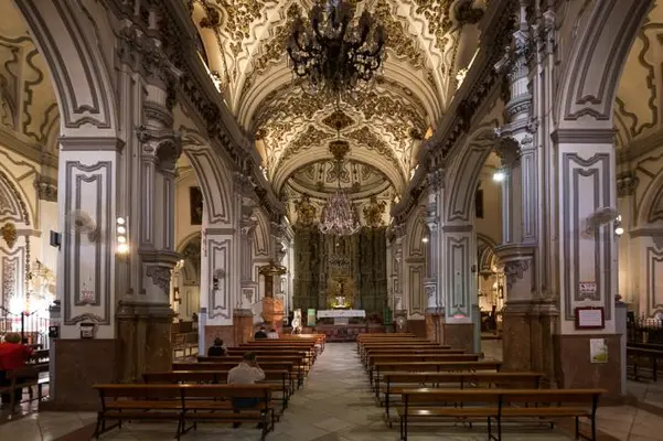 In a chapel on the lower left side, the Baroque interior (18C) contains a statue of Jesus the Rich, a highly venerated object which owes its name to the wooden and silver cross bearing Christ. — Michelin Guide