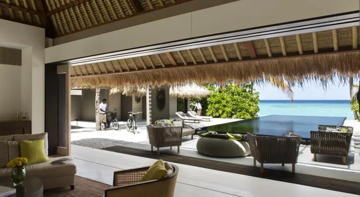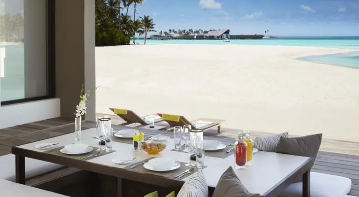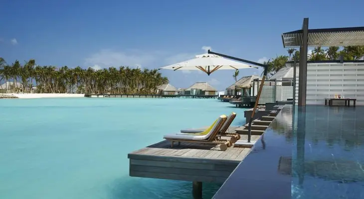 “The white sands and turquoise waters of the Noonu Atoll, in the northwest Maldives, are the backdrop for 45 one- and two-bedroom villas.”